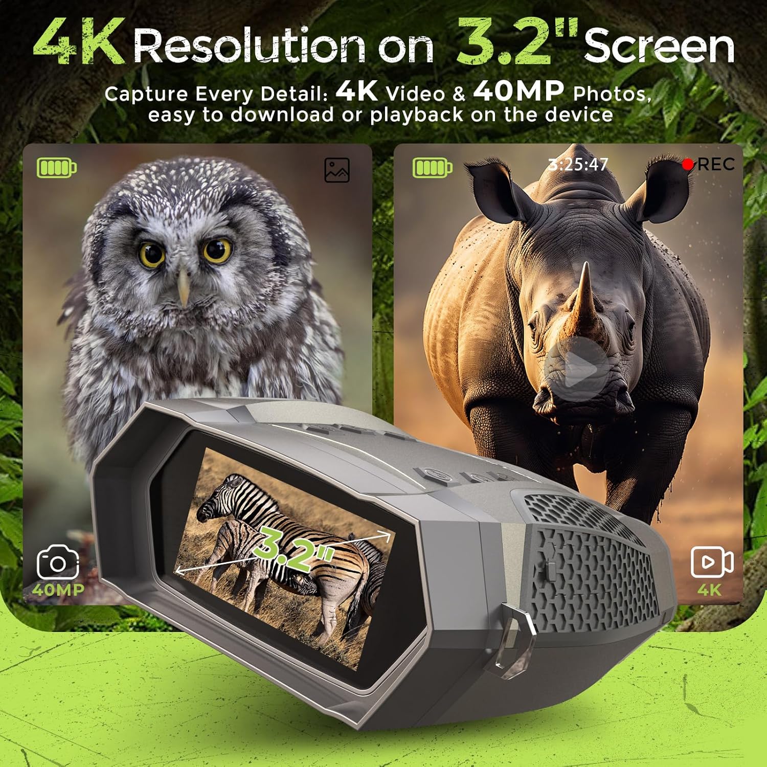| BuiltIn Media | 32GB TF Card, Carrying Pouch,Cleaning Cloth, Neck strap and Compass, Night Vision Goggles with Exquisite Gift Box, Type-C Data Cable, User Manual |