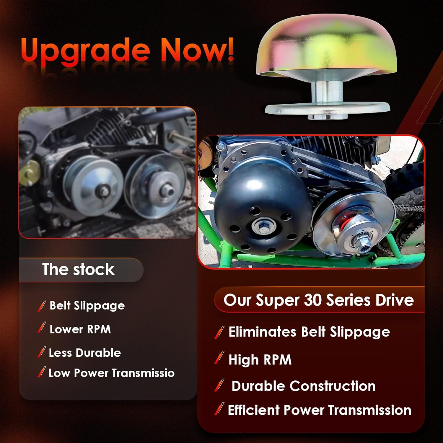 Engine Compatibility:Fits Predator 224cc, 212cc, 196cc 6.5HP enginesHonda GX160, GX200 6.5HP engines208cc Briggs Stratton enginesAll 30 Series TAV kits with 3/4" shaft enginesMini Bikes Models: Coleman CT200U, Trail 200, BT200X, CT200U-exMassimo MB200Baja Motorsports MB165 & MB200 (Heat, Mini Baja, Warrior)Specification:Bore: 3/4" (0.750")Key-way: 3/16" (NOT INCLUDED)Wide asymmetrical belt Engagement: 2,500 RPMTested up to 8,500 RPM for high performancePackage Include:1 x 30 Series Torque Converter Driver Clutch1 x 203589/5959 Drive Belt2 x 3/4" GasketsWarranty:12-MonthAt ATRACYPART, we take pride in the quality of our products and in your satisfaction. If you have any problems, do not hesitate to contact us.